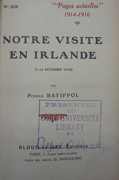 This speech was repeated the following day, when the French bishops addressed the annual meeting of the Catholic Truth Society of Ireland in the Round Room of Dublin’s Mansion House. Cardinal Logue introduced the Frenchmen as ‘two illustrious prelates from Catholic France’ and referred to the ‘ties which have bound Catholic Ireland to Catholic France for centuries past’. The war was then portrayed as a religious war as much as a war of self-defence when Cardinal Logue said that ‘they are fighting a great battle for the Faith and for their people in that great country, France’. It is interesting to note the cardinal’s frequent use of the word ‘Catholic’ when referring to France, given recent French history and the gulf that had developed between Church and State in France. Maybe this was a nod to the rapprochement brought about by the Union sacrée?