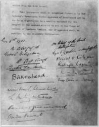 The War of Independence ended with a truce on 11 July 1921. As President of the Irish Republic, Eamon de Valera authorised the members of his government to open negotiations with Britain in October. The basis of the conference was the ‘Gairloch Formula’ proposed by British Prime Minister Lloyd George. According to this formula, the status of a republic, as previously demanded by de Valera, was not acceptable, and instead the Irish delegation – Arthur Griffith, Michael Collins, Robert Barton, Eamon Duggan and George Gavan Duffy – was to ascertain ‘how the association of Ireland with the community of nations known as the British Empire may best be reconciled with Irish national aspirations’.